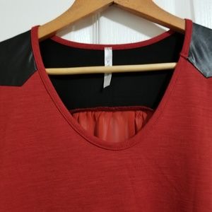 Poet Burnt Orange Top Faux Leather Trim Sheer Back