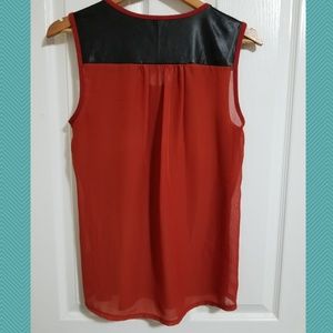 Poet Burnt Orange Sleeveless Top w/ Faux Black Leather Shoulders and a Sheer Back
