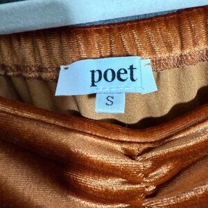 Poet Velvet Pleated Chest Square Neck Dress Women's Size Small Brown Party Charm