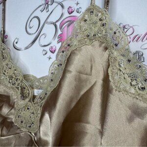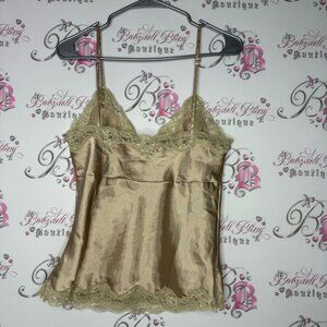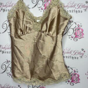Poet camisole tank top gold shimmery fabric with lace detail and sequins beaded