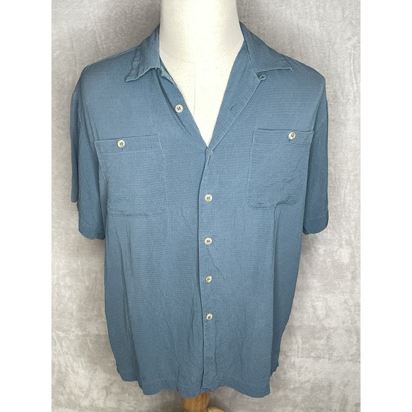 Poeta Moda Italy Mens Button Up Silk Blue Short Sleeve Shirt Sz Large