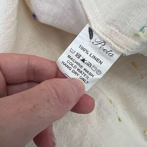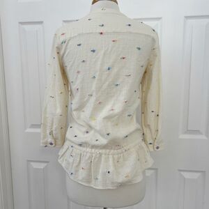 Poeta Womens Multicolored Thread Flecks Embroidered Ruffle Linen Blouse Size XS