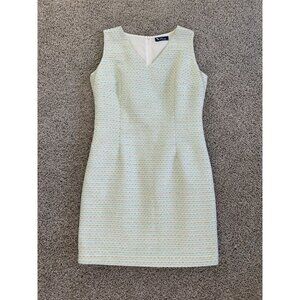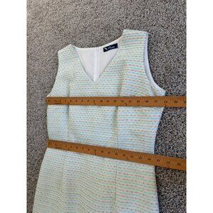 Poeta Womens Sz L White & Gold Sleeveless Tweed Sheath Dress With V-Neckline
