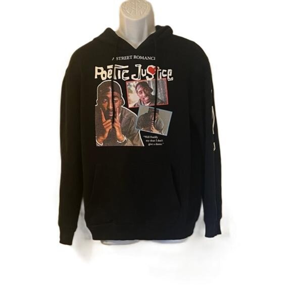 Keywords: Tupac Shakur, Poetic Justice, rap, hip hop, streetwear, graphic hoodie, movie apparel, casual wear, music fan, comfort, pullover, long sleeve