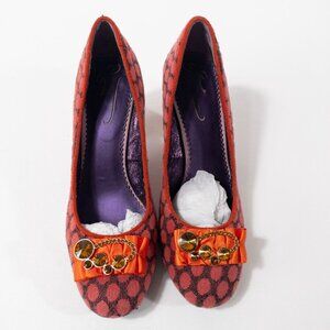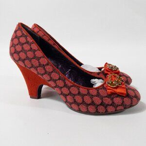Poetic Licence Orange Polka Dot High Heel Pumps Jewel Accent SZ 40.5 9.5