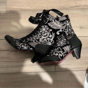 Poetic Licence by Irregular Choice Lady Victoria Floral Sequin Boots Size 5.5