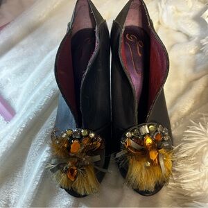 Poetic License 6 1/2 M Flux Leather Heel Bootie,Gray 3.5" Rhinestone Peep Toe