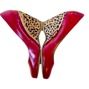 Poetic License Endearing Red Patent Leather Calf Hair Wedge Sz 7.5