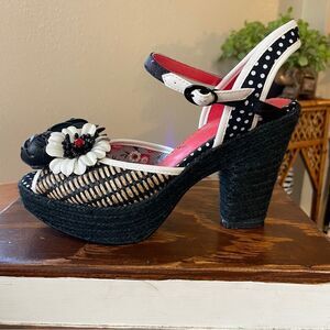 Poetic License Fancy Me Block Platform Heels Black Tan Red White Floral US 6