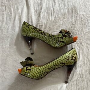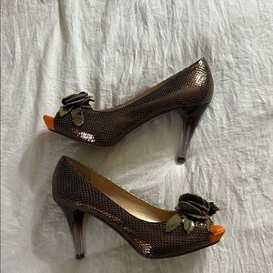 Experience elegance with Poetic License's green and brown heels, featuring a unique textured design. These stylish heels combine comfort and sophistication, making them perfect for both casual and semi-formal occasions. Elevate your look with this distinctive pair that effortlessly blends fashion and function.