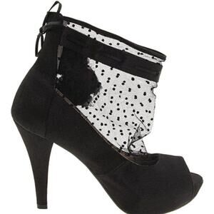 goth heels, gothic shoes, dark romantic, poetic justice sweet dreams, black pumps, polka dot mesh, statement heels, peep toe pumps, alternative fashion, goth glam, dramatic shoes, edgy heels, victorian goth