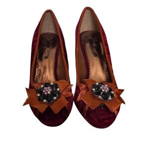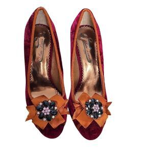 Poetic License Womens Size 6.5 Red Orange Rhinestone Velvet Dazzling Heel Pumps