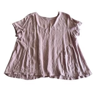 Poetry 100% Linen Lagenlook Oversized Swing Scoopneck Lilac Shirt Top size 18