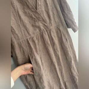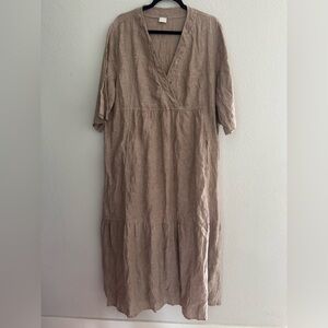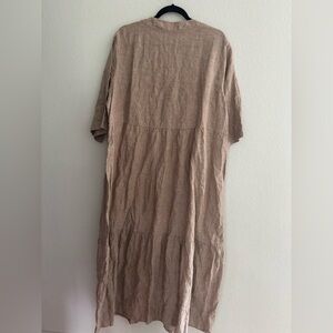 Poetry 100% Linen Women Maxi Dress Size 14 beige pockets lagenlook
