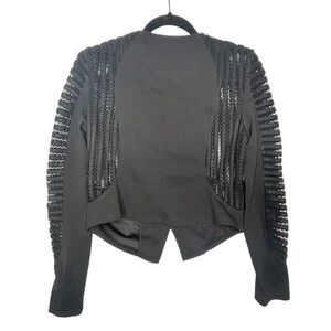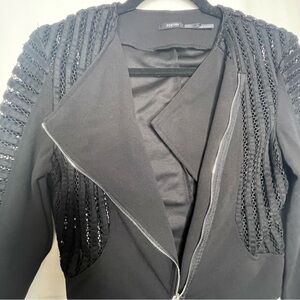 Poetry Black Blazer with Asymmetrical Zipper and Ribbed Panels Juniors Size L