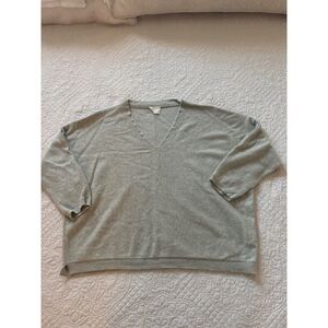 Poetry Cashmere Cropped Oversized V-Neck Sweater. Size 14. Light Sage green/grey color. Excellent like new condition.