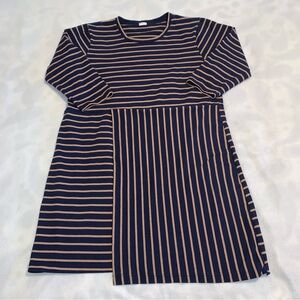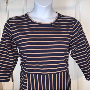Poetry Knit Faux Wrap Dress Navy Brown *Size Tag Missing* Approx. Sz Large