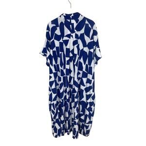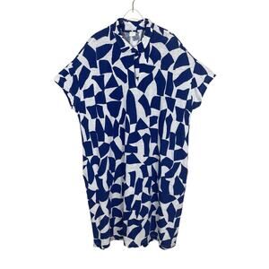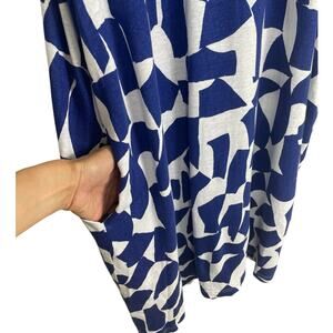 Poetry Linen Cotton Geometric Shift Dress Art To Wear Lagenlook Blue White US 16