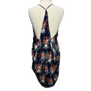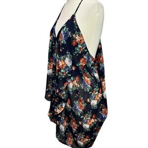 Poetry Mini Dress Womens Size S Navy Blue Floral Asymmetrical Layered Cover Up Boho