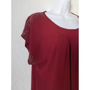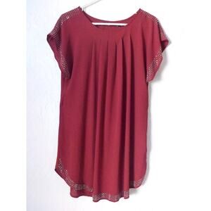 Poetry Pink Shift Pleated Tunic Dress Women size Small Studs Accent Short Sleeve