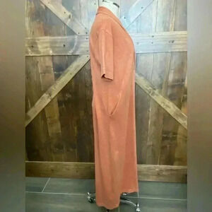 Poetry Short Sleeve V-Neck Hemp Organic Cotton Maxi Dress Chili Pink Size 6