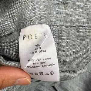 Poetry Tapered Ankle Pants Womens 18 Gray Elastic Waist 100% Linen Relaxed High