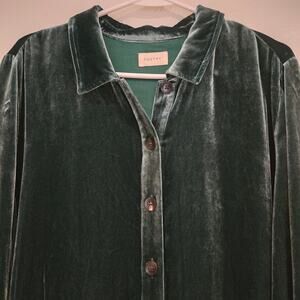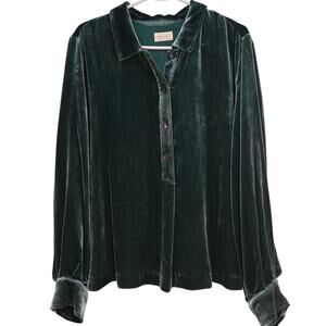 Poetry Velvet Silk Blend Dark Green Popover Long Sleeve Poet's Shirt, Size 16