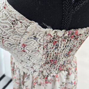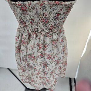 Poetry White Size Small Strapless Mini Dress with floral design with built-in inner bra