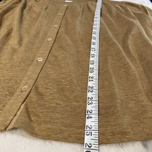 Poetry Flowy Boho Golden Linen Scoop Neck 3/4 Sleeves Cotton Trim Button Front Lightweight Loose Top