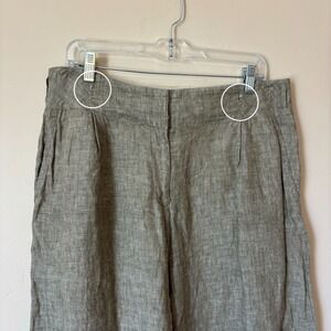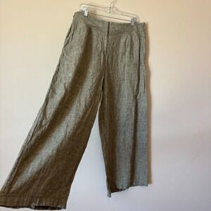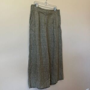 Poetry Women's 12 Wide Leg 100% Linen Green Trousers Pants Boho Comfort Travel