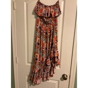 Poetry Women's Dress Tiered Hem High Low Midi Strapless Mixed Print Size M BOHO.