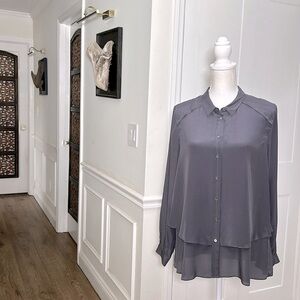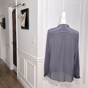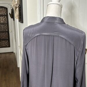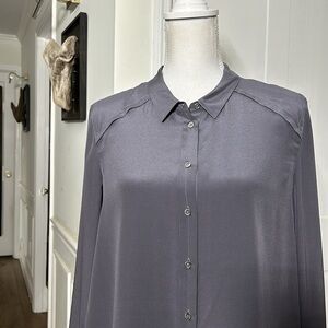 Poetry Womens Gray Silk Button Front Blouse Sz 10 Minimalist Quiet Luxury Office