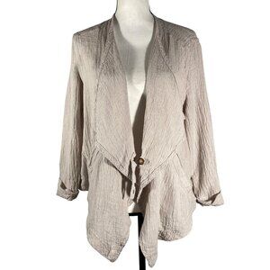 Poetry linen textured asymmetrical hem cardigan top neutral taupe women’s 14