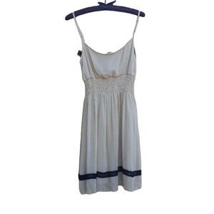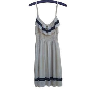 Poetry Boho Peasant Old West Ruffle Smocked Mini Dress Cream Black Sz M