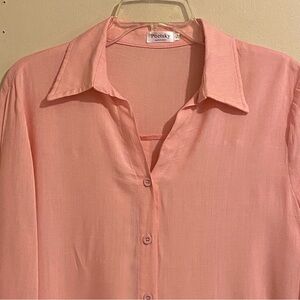 Poetsky Blouse Size Small Women’s Button Up Long Roll Tap Sleeve Shirt