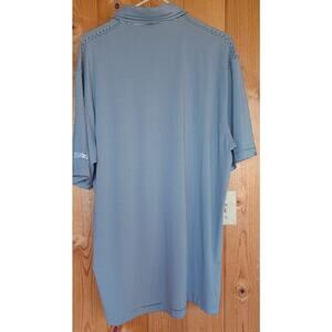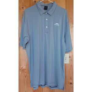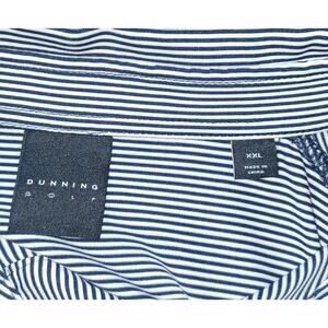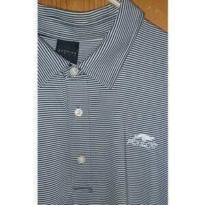 Pohl Cat Dunning Golf Polo Men's XXL Blue and White Stripe Comfort Stretch Fabric High Low Hem with Slits