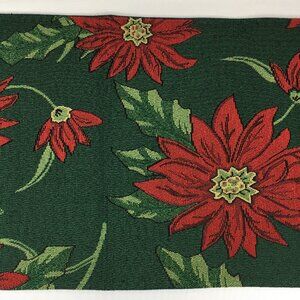 Poinsettia 69 x 13 Christmas Table Runner Red & Green Floral Holiday Tapestry