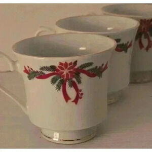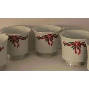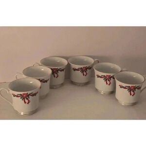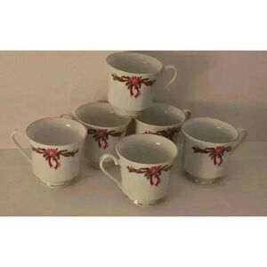 Poinsettia & Ribbons Fine China - Tea / Coffee Cup - 3"x 3 1/8"- 6 Tea Cups