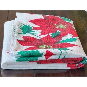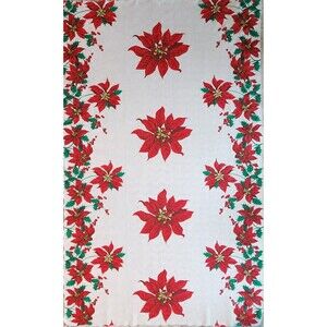 Poinsettia Tablecloth Rectangle 96x60 inches Scalloped Edges.