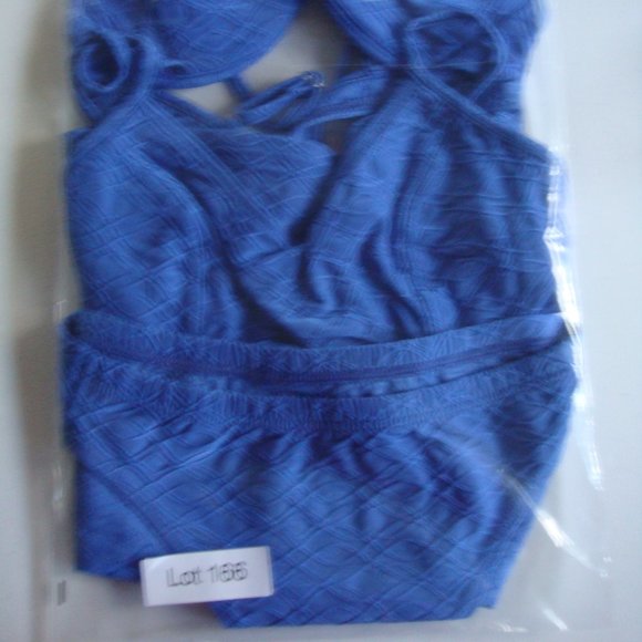 Point Conception Swim Suit Set. Blue Tankini with Brief and two tops. Bra top size 34B with underwire, Tankini top size 8 and is 16 inches long and High cut leg brief size 8.