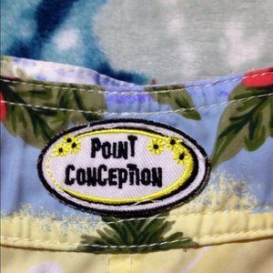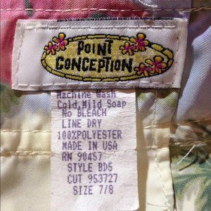 Cute floral beach scene shorts with one back pocket. Good for surfing or just a fun day at the beach as swim shorts. 14 1/2" waist flat lay, 10" rise. Good condition