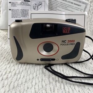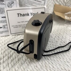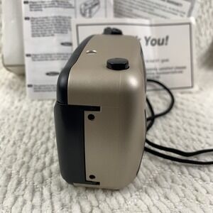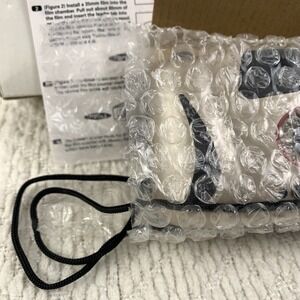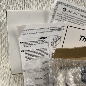 white and black film camera with easy point-and-shoot operation. Compact design for casual photography. Includes neck strap and basic documentation. The white and black color scheme offers a clean, classic look.