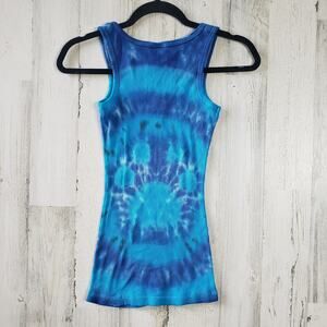 Point Sportswear Blue Dog Paw Print Tie Dye Ribbed Tank Top Women's Size Medium