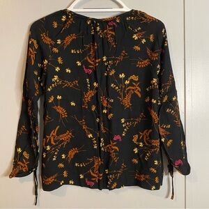Point Sur Black and Brown Floral Top Size Small