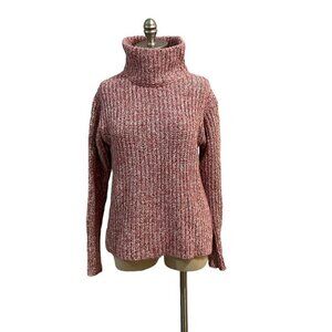 Point Sur Cable Knit Turtleneck Sweater Size Small Pink White