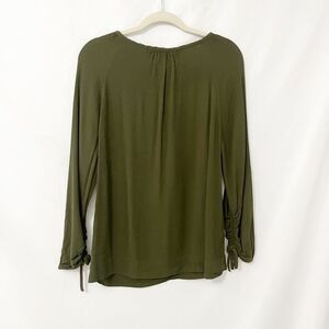 Point Sur Drapey Open V-neck Top Green J6240 Long Sleeve Size S