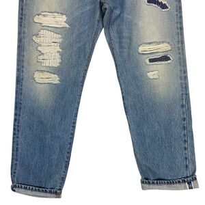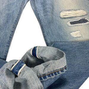 Point Sur Jeans Womens 30 Blue Distressed High Waisted Cropped Leg Selvedge NEW