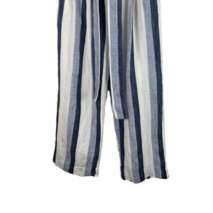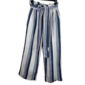 Point Sur | White Blue Stripe Linen Wide Leg Pants