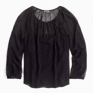 "This lightweight pin dot chiffon blouse/top is the easiest piece to dress up or down."