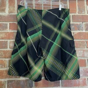 Point Zero Board Shorts Size Large Plaid Black Green Yellow White Swimwear